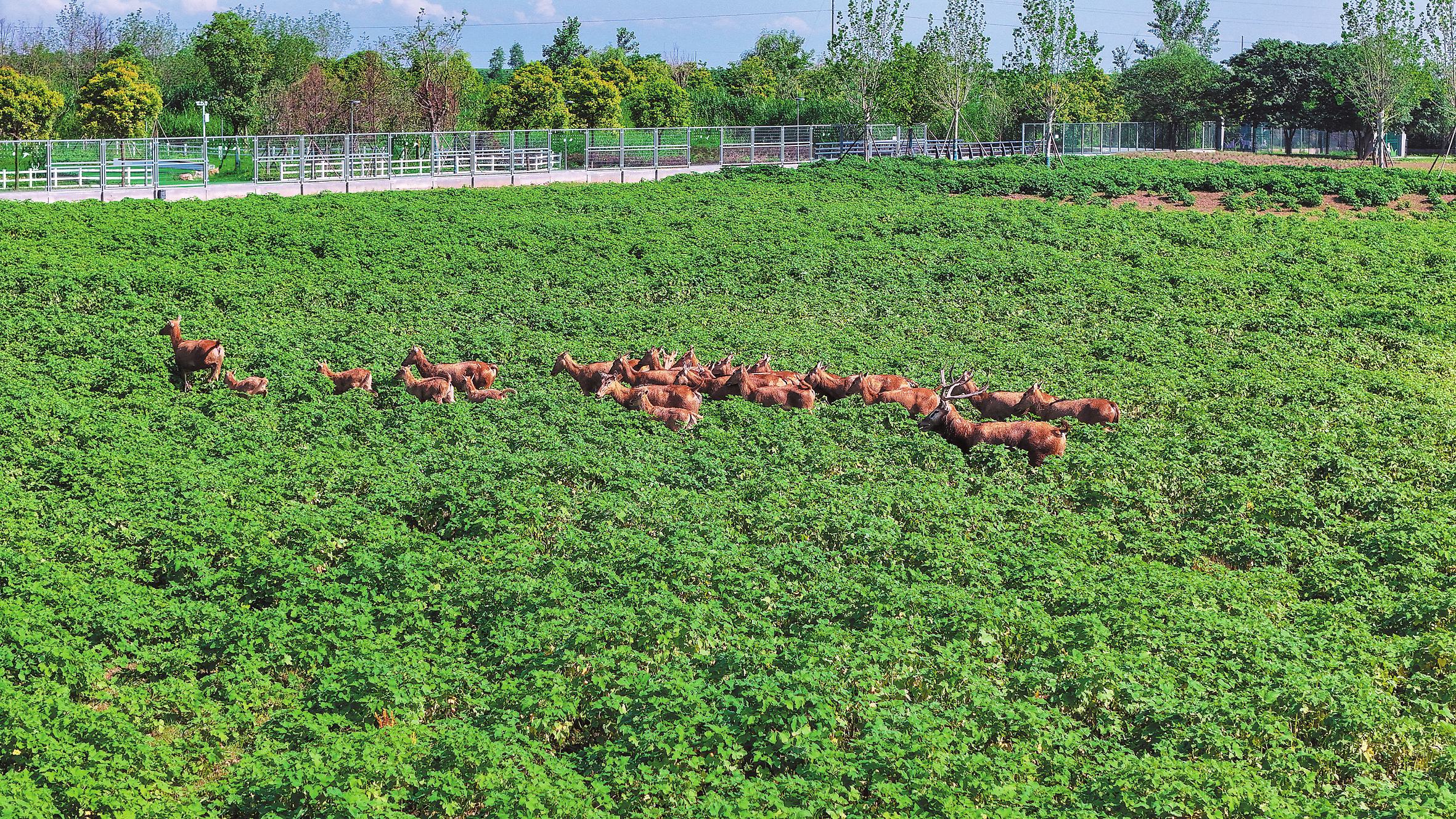 如今,这片湿地已建成湖南东洞庭湖麋鹿和鸟类救护避难中心,成了32头“劫后余生”麋鹿以及100多只珍稀鸟类和哺乳动物的温暖家园。